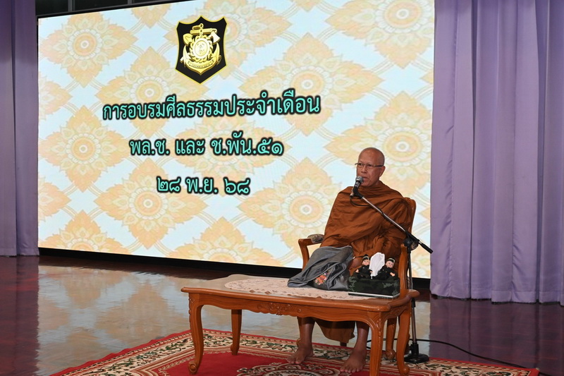 พ.อ.ชีระชัย พึ่งยอด วิศวกร พล.ช. ผู้แทน ผบ.พล.ช. พร้อมคณะผู้บังคับบัญชา และกำลังพล สังกัด พล.ช., นขต.พล.ช. และ ช.พัน.51 ร่วมกิจกรรมอบรมศีลธรรมวัฒนธรรมทหาร ประจำเดือน พ.ย. 68 โดยมี พระมหาสมพงษ์ เขมวโร ผู้ช่วยเจ้าอาวาสวัดเขาวัง เป็นองค์แสดงธรรม ในหัวข้อ "มงคลชีวิต ความมีวินัย" ณ สโมสรค่ายบุรฉัตร