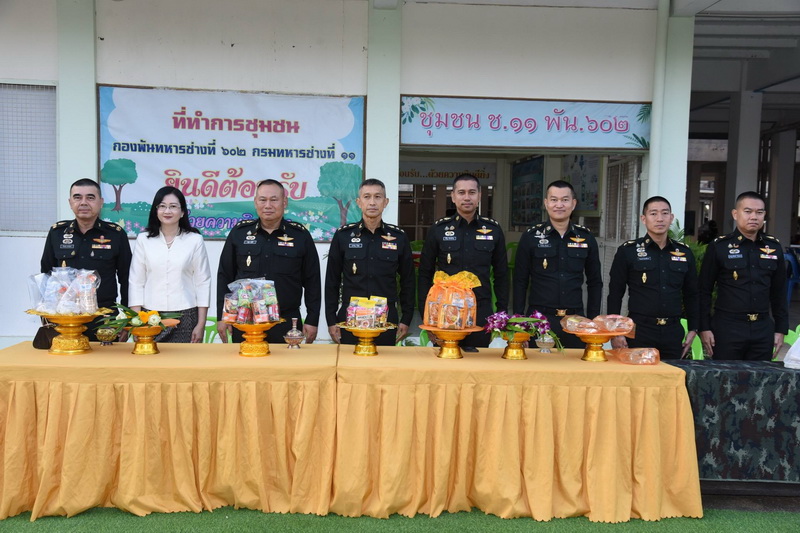 พลตรี จิระเดช ขจายแสง ผู้บัญชาการกองพลทหารช่าง และภริยา พร้อมด้วยคณะผู้บังคับบัญชา ได้นำกำลังพลและครอบครัวร่วมกิจกรรมทำบุญตักบาตร ณ ชุมชน กองพันทหารช่างที่ 602 กรมทหารช่างที่ 11